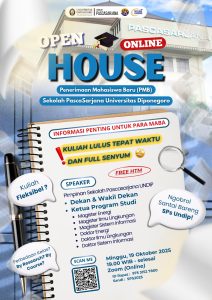 Semarang, October 19, 2025 — The Graduate School of Diponegoro University (UNDIP) held an Open House for New Student Admissions on Sunday, October 19, 2025, at 7:00 PM WIB (Western Indonesian Time) online via Zoom Meeting.